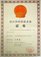 2009年 紹興市科學(xué)技術(shù)獎(jiǎng)三等獎(jiǎng)